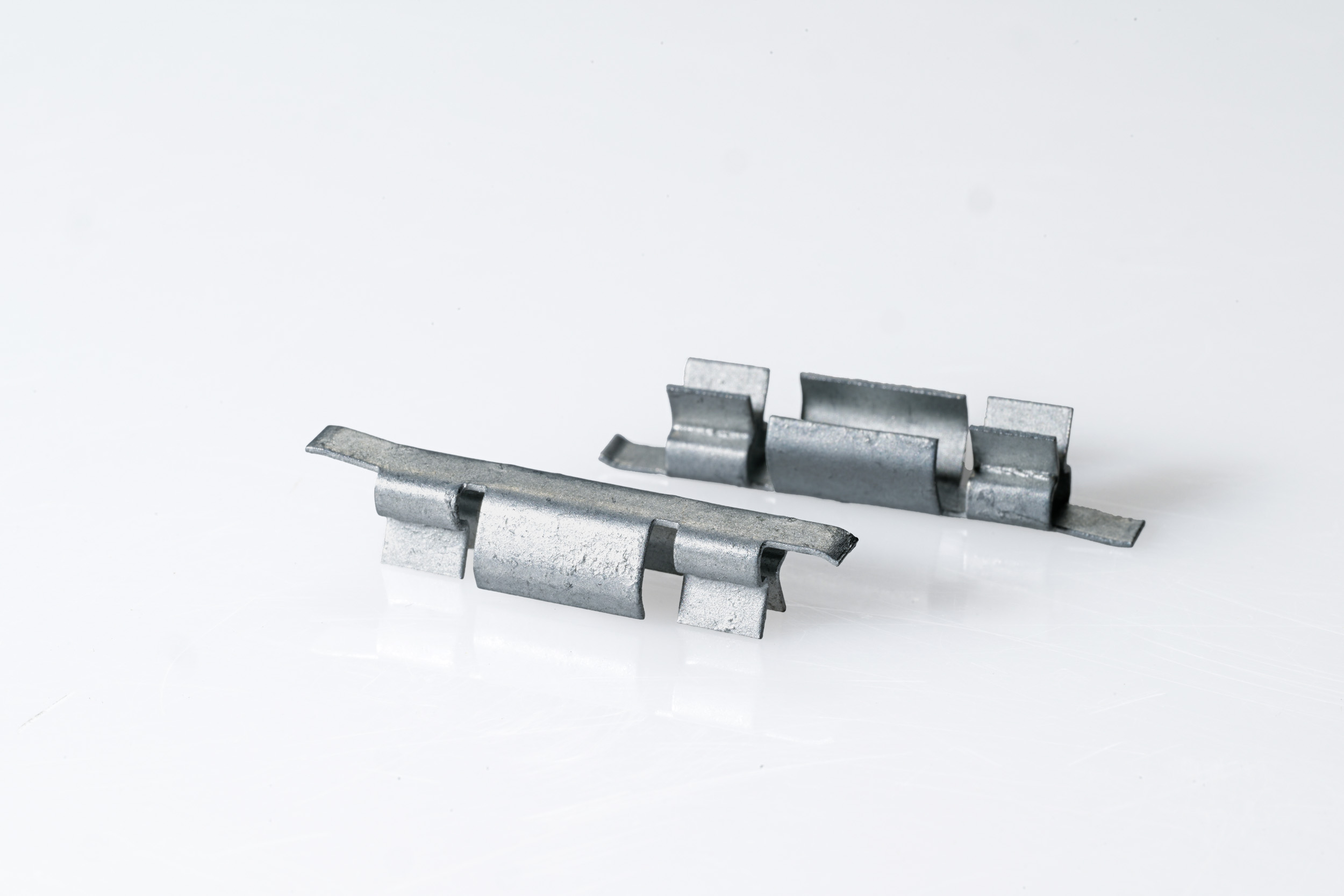 Si les utilisations du fil formé et des ressorts plats présentent des similitudes, ces derniers demandent un développement complexe. De plus, ils s’avèrent plus coûteux à produire. On les trouve dans les capots de briquet, les clips de carrosserie et les agrafes auto. Ils forment également les clips d’assemblage mécanique, les contacts électriques. Leurs formes embouties servent à fabriquer les coupelles d’aérosol.